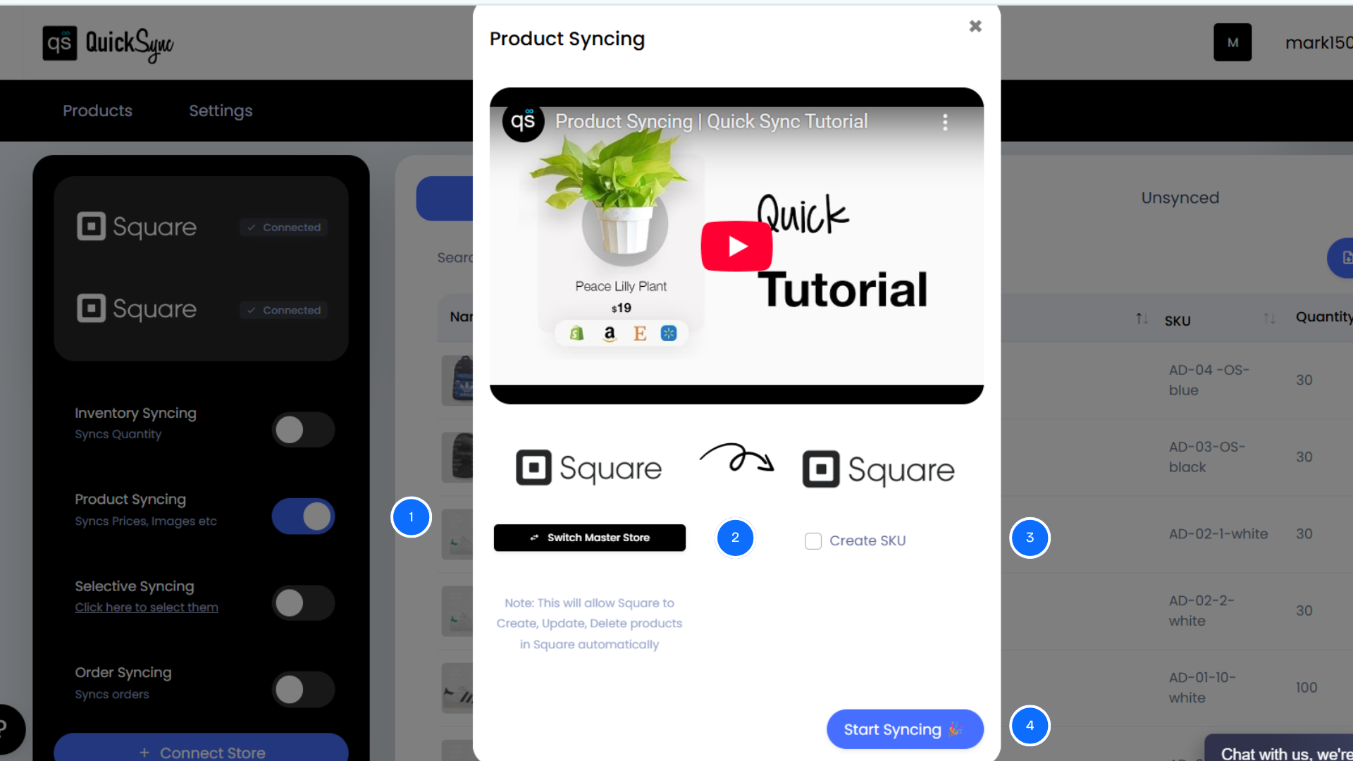 Here’s how you can sync product catalogs synchronized in all Square stores using QuickSync.