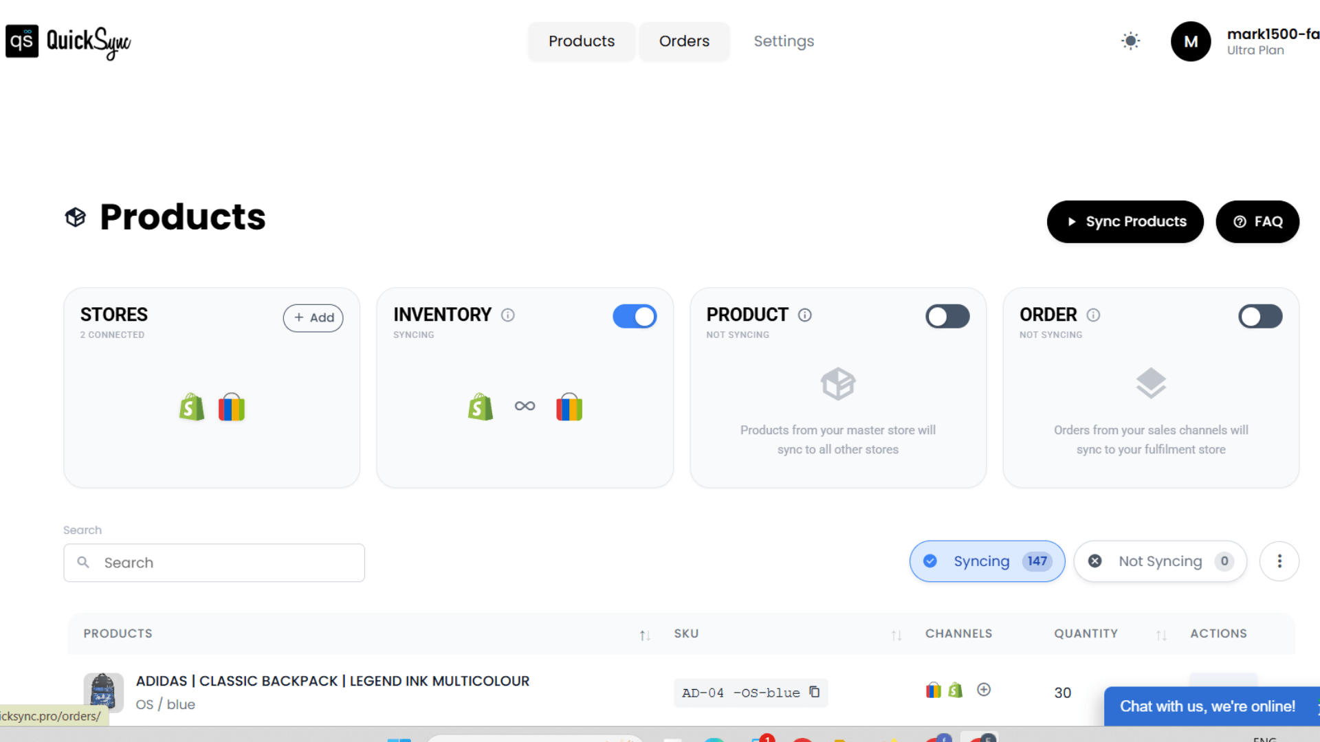 • QuickSync imports your product listings, inventory, and order data.